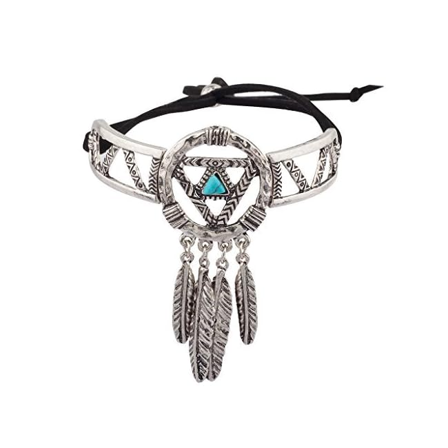 Lux Accessories Boho Stone Dream Catcher Navajo Leaf Bracelet (Burnished Silver)