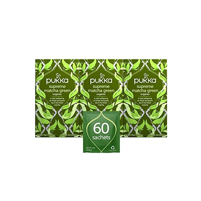 Pukka Supreme Matcha Green, Organic Herbal Green Tea with Oothu, Sencha & Suio Gang, 20 Count (Pack of 3)