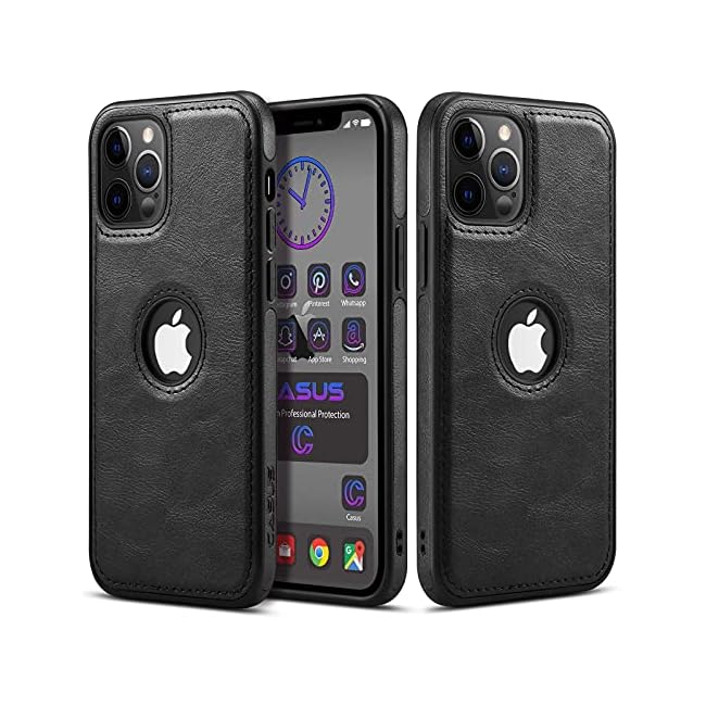 Casus Logo View Compatible with iPhone 12 Pro Max Case Slim Premium Vegan Leather Classic Luxury Elegant Thin Cover (2020) 6.7″ (Black)