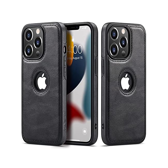 Casus Logo View Compatible with iPhone 13 Pro Case Slim Premium Vegan Leather Classic Luxury Elegant Thin Cover (2021) 6.1″ (Black)