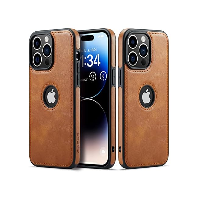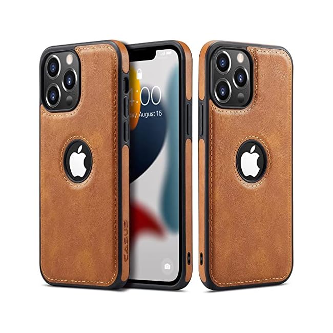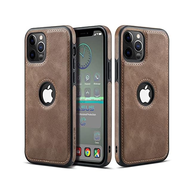Casus Logo View Compatible with iPhone 13 Pro Max Case Slim Premium Vegan Leather Classic Luxury Elegant Thin Cover (2021) 6.7″ (Brown)