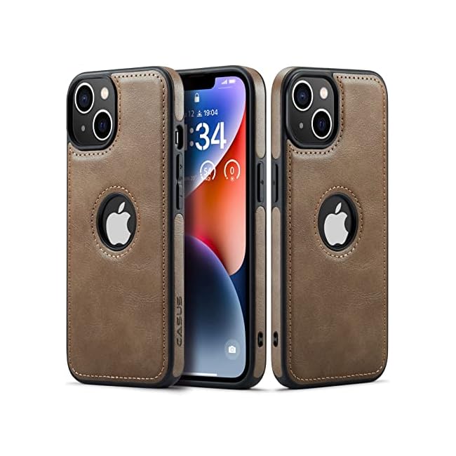 Casus Logo View Compatible with iPhone 14 Plus Case Slim Premium Vegan Leather Classic Luxury Elegant Thin Cover (2022) 6.7″ (Brown)