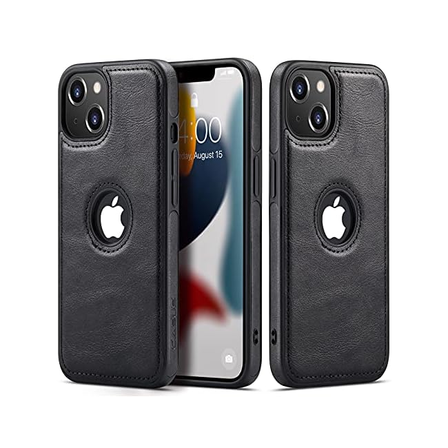 Casus Logo View Compatible with iPhone 13 Case Slim Premium Vegan Leather Classic Luxury Elegant Thin Cover (2021) 6.1″ (Black)