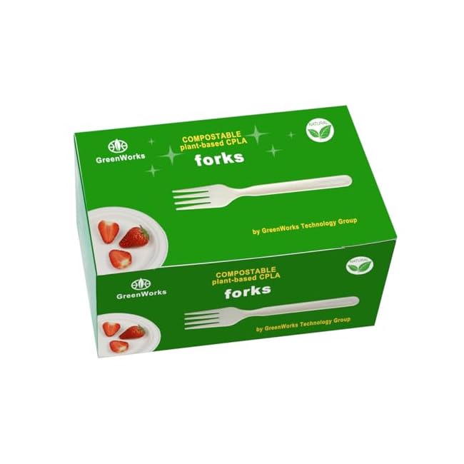 GreenWorks Heavy-duty Compostable Forks, BPI Certified 100 Count 7″ Large Disposable Cutlery Utensils Silverware Flatware Fork