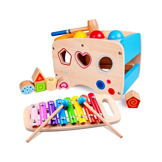 rolimate Hammering Pounding Toys Wooden Educational Toy Xylophone Shape Sorter, Birthday Gift for 1 2 Years Boy Girl Baby Toddler Kids Developmental Montessori Learning Block Toy Fine Motor (Classic)