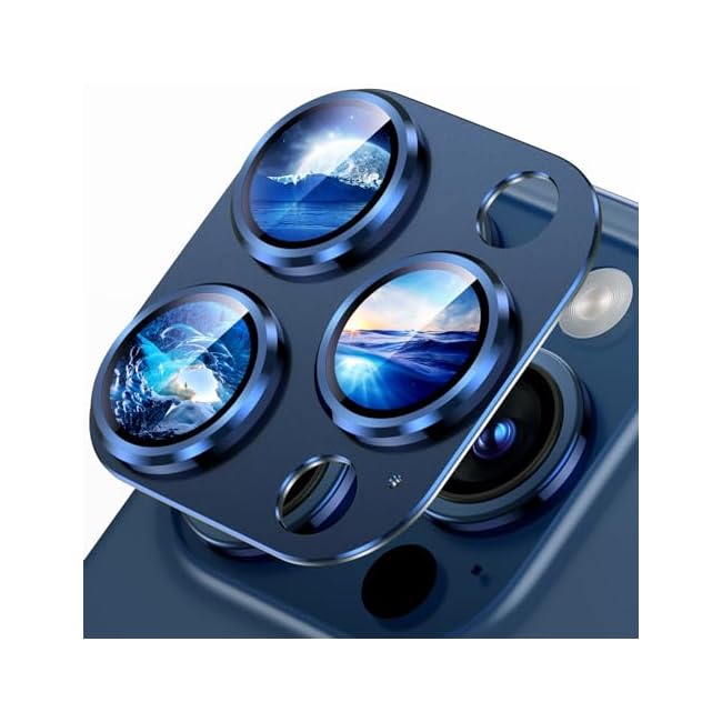 Uyiton Compatible with iPhone 15 Pro/iPhone 15 Pro Max Camera Lens Protector, [Not Easy to Break][Strong Adsorption][Case-Friendly] Metal Tempered Glass Rear Camera Screen Cover – Blue Titanium