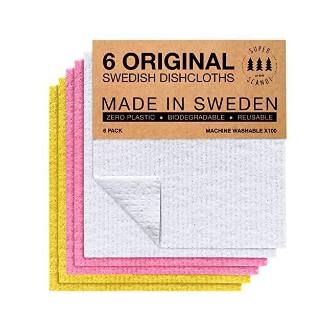SUPERSCANDI Swedish Dishcloths Eco Friendly Reusable Sustainable Biodegradable Cellulose Sponge Cleaning Cloths for Kitchen Dish Rags Washing Wipes Paper Towel Replacement (6 Pack Assorted Colors)
