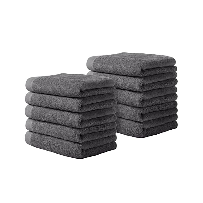 Yoofoss Luxury Washcloths Towel Set 10 Pack Baby Wash Cloth for Bathroom-Hotel-Spa-Kitchen Multi-Purpose Fingertip Towels and Face Cloths 10” x 10” – Dark Grey
