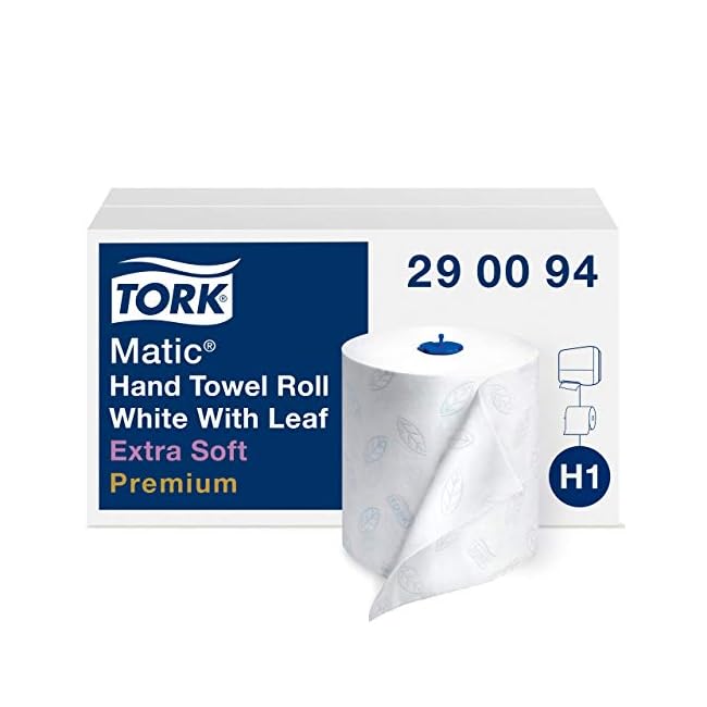 Tork Matic Extra Soft Paper Hand Towel Roll White with Blue Leaf H1, Premium, High Absorbency, 6 Rolls x 300 ft, 290094