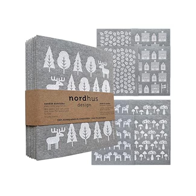 Nordhus Design Swedish Dishcloths, 10 Cloths, Made in Sweden – Reusable, Washable Cellulose Cotton Kitchen Cloths – Replace Paper Towels, Wipes, Sponges, Dish Rags