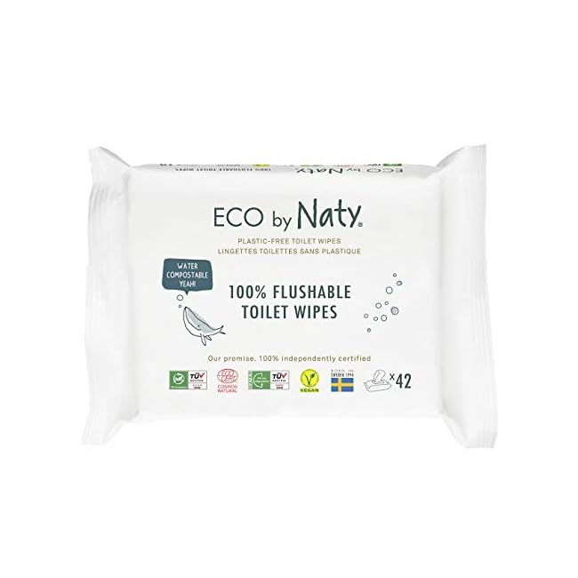 Eco by Naty Flushable Baby Wipes – Compostable and Plant-Based Wipes, Chemical-Free and Hypoallergenic Baby Wipes Safe for Baby Sensitive Skin, 42 Wipes Per Pack (12 Pk)