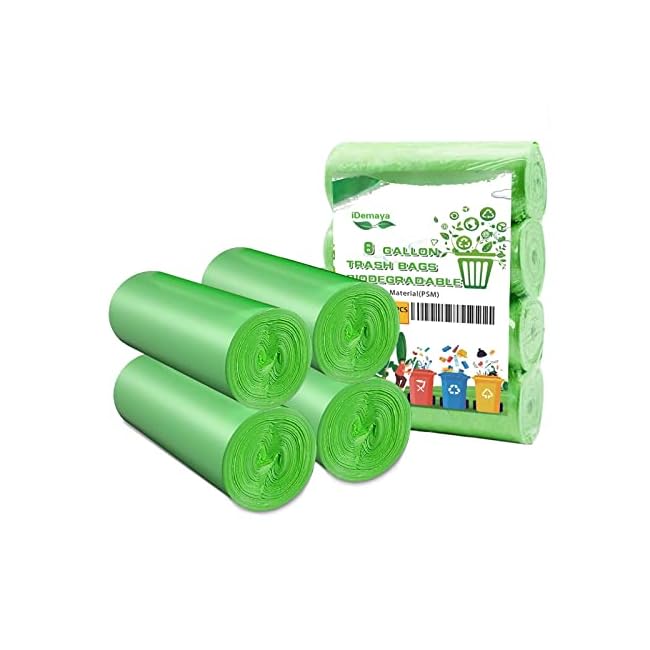 iDemaya Medium Compostable Trash Bags, Biodegradable 8 Gallon Garbage Bags, Recycling Degradable Unscented Rubbish Bags for Kitchen Bathroom Office Car Pet Wastebasket, (4 Rolls / 100 Count, Green)