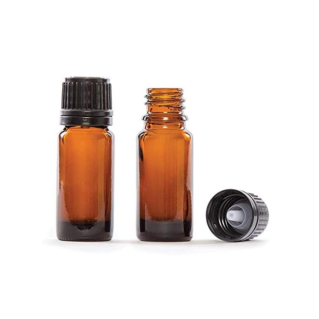 Plant Therapy 10 ml (1/3 oz) Amber Glass Essential Oil Bottle with European Dropper Cap – 4 Pack