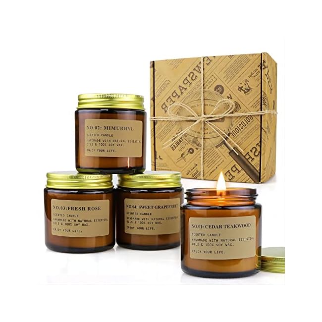 YFYTRE 4 Pack Scented Candle Set Soy Wax, Aromatherapy Candles for Home Decoration, Jar Candles Gift for Women with Amber Glass Jars and Kraft Wrapping