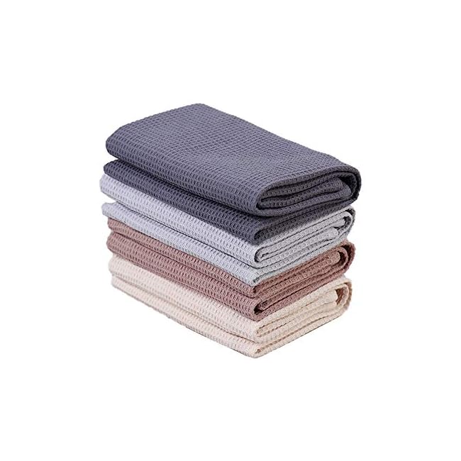 PY HOME & SPORTS Dish Towels Set, 100% Cotton Waffle Weave Kitchen Towels 4 Pieces, Super Absorbent Kitchen Hand Dish Cloths for Drying and Cleaning (17 x 25 Inches, Set of 4)