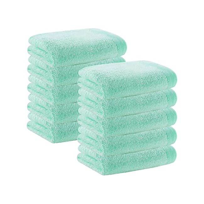 NBLJF Multicolor Small Washcloths Set 10 Pack for Newborn Baby Bath Hand Towel and Face Cloths or Bathroom-Kitchen Multi-Purpose Soft-Comfortable Absorbent Fingertip Towels 10” x 10” (Green)