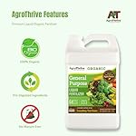 Organic results in less than 1 week OMRI, CDFA and WSDA listed for organic gardening; No synthetic chemicals EVER 3-3-2 NPK General Purpose liquid organic fertilizer; Formulated for lawns, vegetables, greenhouses, herbs and everything else that grows; Derived from organic fish and grain Produced by The Progressive Digestion Process which breaks down all organic ingredients down to a simple molecular structure plants can quickly absorb Activates soil and helps nutrient release; release speed: 70% fast-release, 30% slow-release Promotes vigorous root and foliar growth and improves plant disease resistance Convenient liquid concentrate in a bottle; Just mix 2oz – 4oz with 1 gallon of water and apply to soil| Brand | Visit the AgroThrive Store |