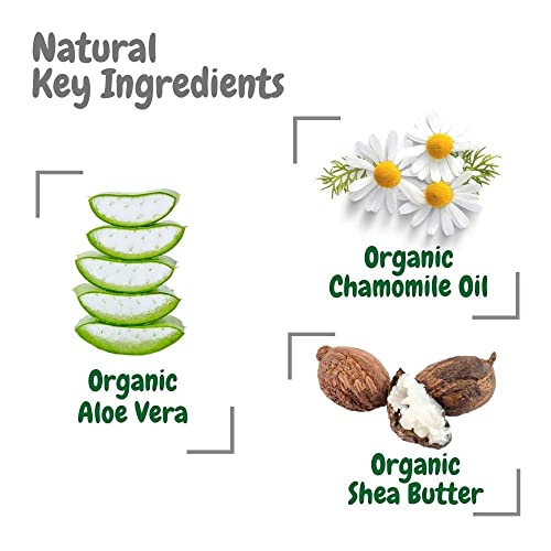 The combination of Organic Shea Butter, Olive Oil, Aloe Vera and Chamomile in this fragrance-free formula, work together to gently soothe and cleanse leaving your baby’s skin feeling silky smooth.