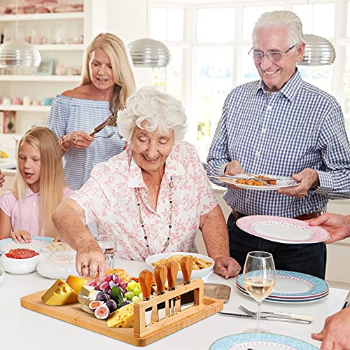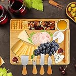 PREMIUM CRAFTSMANSHIP: The craft of quality, style and practical design are standards in all our cheese boards, so each charcuterie board is using bamboo which is durable to use; Also elegant bamboo grain pattern finish and warm bamboo color makes a trendy addition to your kitchen and event. Our quality-paired will meet all cheese lovers’ needs to make you enjoy your cheese party better.
