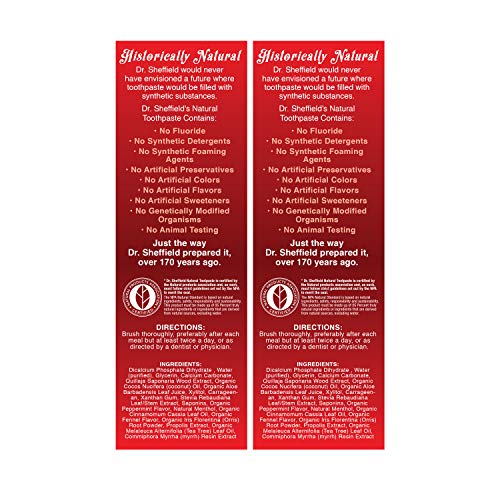 THE ORIGINAL TOOTHPASTE: In 1850, Dr. Sheffield created a new tooth cleaning product called toothpaste, replacing the common tooth powders. Today, we continue his legacy by providing you a certified natural, great tasting toothpaste you can enjoy!