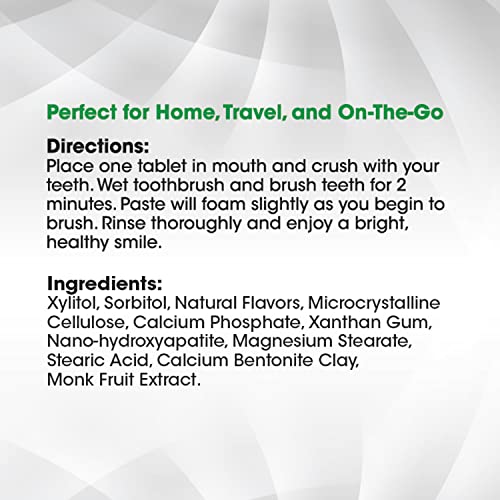 Each jar contains 90 generously sized toothpaste tablets made with all-natural ingredients. Made with calcium bentonite clay to help whiten your teeth naturally and natural flavor to freshen your breath. We also include Nano Hydroxyapatite and Xylitol as a dentist recommended ingredient..