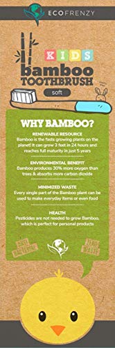 HIGH QUALITY, ECO-FRIENDLY, BIODEGRADABLE BAMBOO TOOTHBRUSHES. (PACK OF 4) We know you care and every bit counts. Ditch the plastic and switch to an environmentally friendly toothbrush. SAFE BPA FREE COLOR BRISTLES. High quality kids size DuPont bristles. Dyed with safe organic coloring. ZERO WASTE PACKAGING. 100% PLASTIC FREE. 100% RECYCLED MATERIAL.| Brand | Brand: EcoFrenzy |