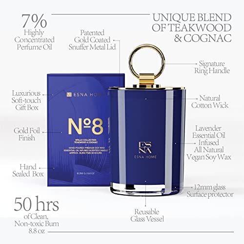 ★ SHOWCASING THE VERY BEST IN HOME FRAGRANCE – This luxurious fragrant candle captures the bittersweet scent of cognac, the woody essence of teakwood & oak and the exotic aroma of saffron resulting a unique and enchanting scent that’s impossible to ignore. Perfect for those who long for the great outdoor, they offer consistent fragrance release during their longer burn time of 50 hours.