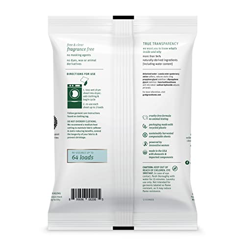 Contains 1 – 64 load pack of Grab Green Wet Dryer Sheets, Fragrance Free.
