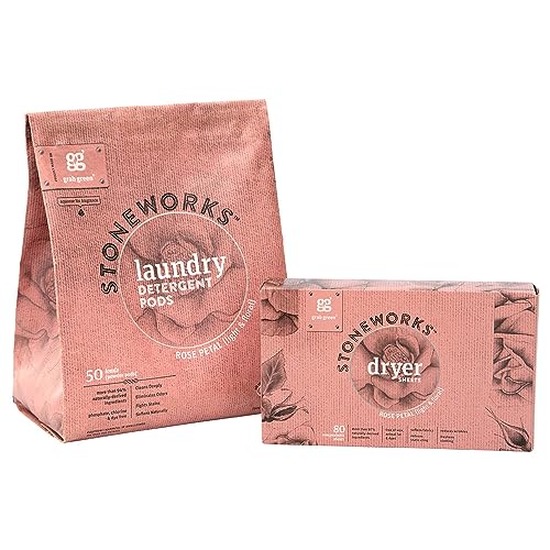 Contains: 1- 50 Pod Bag of Grab Green Stoneworks Rose Petal Laundry Detergent Pods and 1- 80 Sheet Box of Grab Green Stoneworks Natural, Compostable Rose Petal Dryer Sheets Naturally Effective: Our Pods are specifically formulated to cut through dirt leaving your laundry clean and fresh. Follow up with our dryer sheets that naturally soften and reduce static cling and wrinkles without harsh chemicals Rose Petal: Perfectly paired, our convenient, pre-measured pods and compostable dryer sheets provide a light and floral natural fragrance that awakens the senses No Harsh Chemicals: Our Stoneworks collection is the the perfect balance of plant and mineral-based ingredients to ensure the best laundry detergent without phosphates, phthalates optical brighteners, sulfates, parabens or dyes Safer for You, Your Family and the Planet: Grab Green’s plant and mineral-based formulas are made with responsibly-sourced, high-quality ingredients that are proudly cruelty-free, never tested on animals and made in the USA| Brand | Visit the Grab Green Store |
