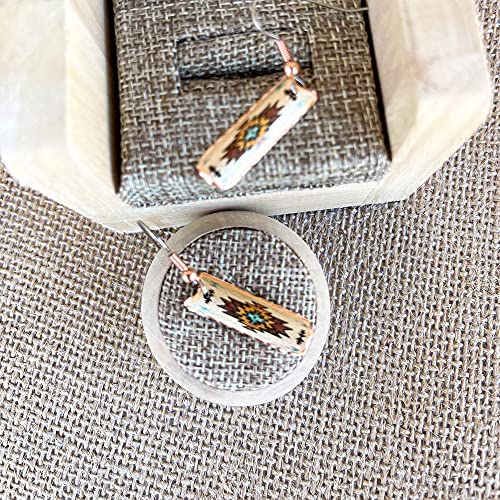 The Dainty Copper Earrings are handcrafted copper arts that have a screen printed on a silver-plated copper sheet. Pieces are individually diamond cut to reveal the rosy luster of the copper. Three layers of acrylic finishes on the jewelry (does not tarnish) no polishing required. Every handmade craft has 25 steps and requires about a week for completion.