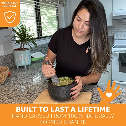 MAKE DELICIOUS GUACAMOLE, SALSA, PESTO and MORE! Home made, fresh delicious guacamole, pesto and more can be made on demand with this granite mortar and pestle set in the comfort of your home. Create healthy sauces with ease using your granite molcajete that the whole family can enjoy.