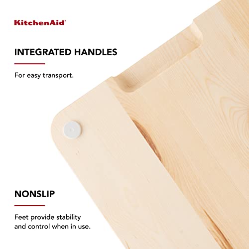 KITCHEN ESSENTIAL: This chopping block is expertly designed to provide an exceptional experience, whether for cutting, slicing, dicing, mincing, or chopping. NONSLIP: Chopping block is designed with nonslip feet for stability and control. EASY TRANSPORT: Features recessed side handles for easy lifting and transport, this modern chopping block is perfect for entertaining. DURABLE DESIGN: Crafted from birch wood and measuring 1.25 inches thick, this board is engineered to maintain its shape over time for long-lasting durability and is gentle on knives, keeping blades sharp. EASY CARE: For long lasting performance, hand washing with warm water and a mild detergent is recommended. Dry immediately.| Brand | Visit the KitchenAid Store |
