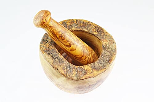 Handmade from Mediterranean olive wood Rustic style A very hard wood, great for grinding herbs and spices Approx. diameter 4.7 inches, height varies| Product Dimensions | |