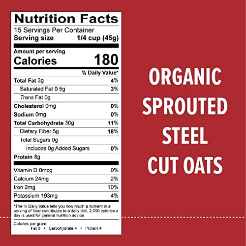 SPROUTED SUPERPOWERS: Whole oats are packed with fiber, essential vitamins like zinc, iron, potassium, and magnesium, and antioxidants. We sprout our organic steel cut oats, to help break through the oat kernel’s natural defenses so you get more of the nutrition stored inside.