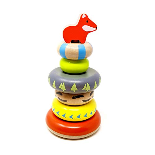 MADE WITH HEIRLOOM QUALITY REAL BEECH WOOD NOT MDF OR OTHER SUBSTITUTES: Rings and fox topper are made with real wood, not MDF, compressed sawdust/ particle board, plastic or other substitutes, and coated with non-toxic varnish and waterborne paint. Please be aware that this toy is made with real wood and the pieces are **hard**. Parental supervision is strongly encouraged.