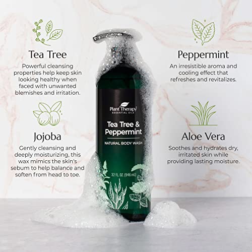 YOUR NEW FAVORITE BODY WASH: Plant Therapy’s Tea Tree & Peppermint Natural Body Wash is made with premium natural ingredients that can gently wash your skin. Enjoy the benefits of other natural ingredients such as Jojoba Oil which gently cleanses and deeply moisturizes your skin while mimicking the skin’s sebum to help balance and soften from head to toe and Aloe Vera which soothes and hydrates dry, irritated skin while providing lasting moisture.