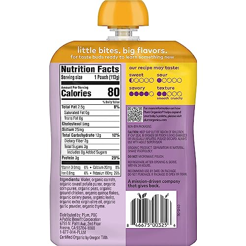 Pack of twelve, 4 ounce (Total of 48 ounces) 3 grams of protein Certified Organic Non-BPA packaging & child safe, recyclable cap Convenient, re-sealable & portable pouch for on-the-go feeding| Brand | Visit the Plum Organics Store |
