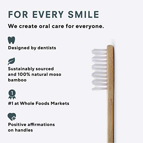 PFAS-FREE, EXTRA SOFT BRISTLES: The toothbrush bristles are made from soft nylon that gently massage the gum line and delivers a soft, yet effective brush while the tapered bristles help reach between teeth. DURABLE AND PLANT-BASED: The Moso bamboo handle is 100% bamboo and a strong alternative to plastic toothbrushes. DENTIST APPROVED: Dentists recommend only using our soft bristles toothbrushes because their wave-shaped design provides exceptional cleaning performance along the gum-line and in between the teeth. POSITIVE AFFIRMATIONS: Get inspired every time when you brush with positive affirmations such as “Brush Smile Repeat,” “Hello Gorgeous,” and “Hello Handsome” etched into the Moso bamboo toothbrush handle. TRY OUR MULTI-PACKS: Purchasing multiple bamboo toothbrushes at once reduces waste and fuel by shipping the brushes at once. PLUS ULTRA is rooted in sustainability, inclusivity, eco-conscious production, and philanthropy because elevated, clean, and high-quality products keep our planet clean and makes us smile.