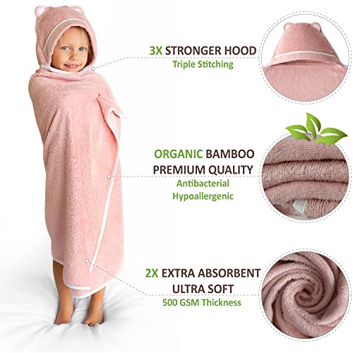 ❤ ORGANIC, NATURAL, HYPOALLERGENIC: Our hooded toddler bath towels are made from rayon from bamboo that naturally features hypoallergenic properties; safe, natural and healthy organic towels for kids with sensitive skin