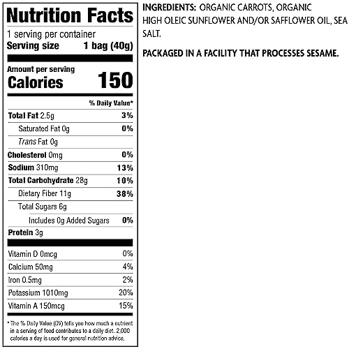 PERFECT ON-THE-GO SNACK: Don’t let your busy day stop you from living a healthy, nutrient-rich lifestyle. Enjoy 4 convenient, snack size carrot chip packs to fuel your day!
