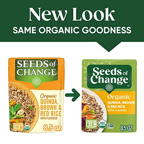 Six 8.5 OZ pouches of SEEDS OF CHANGE Organic Quinoa, Brown & Red Rice with Flaxseed Nutritious organic food with flavorful, plant-based ingredients that is easy to prepare any day of the week Features brown and red rice combined with black quinoa and brown flaxseed, creating a delicious blend of aromas and flavors Tasty rice blend takes 90 seconds to prepare in a microwave or on a stovetop with little to no cleanup Enjoy organic rice as part of different recipes like bowls and stir-fries or as a tasty side dish| Brand | Visit the SEEDS OF CHANGE Store |
