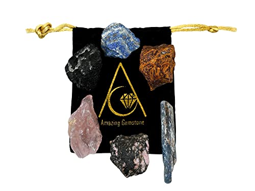 π Authentic raw healing crystals and stones includes Black Tourmaline, Rose Quartz, Rhodonite, Lapis Lazuli, Mariyam and Kyanite.