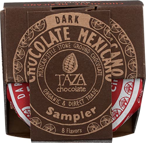 Contains 8 – 1.35oz Mexicano Discs ( Cacao Puro, Chipotle Chili, Cinnamon, Coffee, Guajillo Chili, 85% Super Dark, Salted Almond, and Vanilla) Product Note: Exposure to heat or sunlight may lead to melting/damage of product. Hence customers are expected to be available during the product delivery Inspired by our passion for Mexican chocolate traditions, we hand-carve granite millstones to make these rustic organic dark Mexican style chocolate discs bursting with bright tastes and bold textures. Enjoy as a hot or iced chocolate beverage Certified USDA Organic, Non-GMO Project Verified, Kosher Certified, and Direct Trade to ensure quality and transparency for all All-Natural, Gluten-Free, Dairy-Free, Soy-Free, and Vegan We make our perfectly unrefined, stone ground chocolate from bean to bar at our Somerville, MA chocolate factory using traditional Mexican stone mills to grind our cacao| Brand | Visit the Taza Chocolate Store |