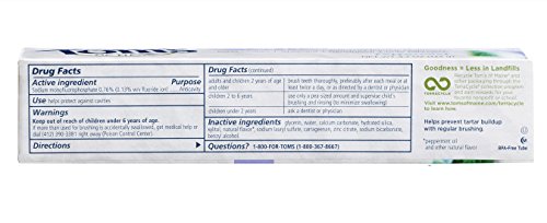 NATURAL CAVITY PROTECTION: Contains 2 to 4.7 ounce tubes of preservative free, natural, whitening toothpaste in Spearmint flavor; Help keep your whole mouth feeling fresh with 6 benefits in one natural toothpaste FREE FROM ARTIFICIAL SWEETENERS: Whitening toothpaste that fights cavities and whitens with naturally derived silicas by removing surface stains, freshens breath, and helps prevent plaque and tartar buildup SMILE WITH TOMS: Natural toothpaste that does not contain any artificial sweeteners, preservatives, colors, or flavors; or animal ingredients. Toms toothpaste promises fresh, healthy smiles all without the harsh chemicals CERTIFIED B Crop: Tom’s of Maine meets the highest standards of verified social and environmental performance, public transparency, and legal accountability to balance profit and purpose GIVING FOR GOODNESS: We believe in giving back. Tom’s of Maine donates 10 Percent of our profits to charities committed to children’s health, education and the environment. Employees donate 5 Percent of paid time to causes they are passionate about in their communities. Thank you for supporting Tom’s of Maine| Brand | Visit the Tom's of Maine Store |