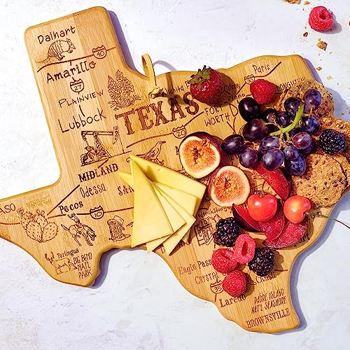 UNIQUE TEXAS SHAPE: Celebrate life in The Lone Star State with this beautifully crafted bamboo cutting board cut to the shape of Texas