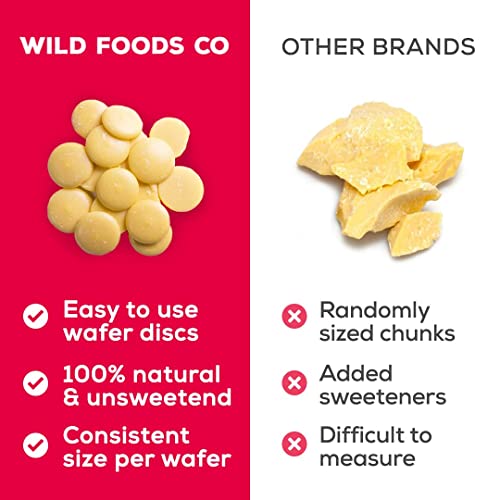 Melt-in-your-Mouth Deliciousness: Indulge in the mouth-watering taste of Wild Foods’ cocoa butter. While these cacao butter organic discs may melt during warm weather months, but they are still completely usable and retain their delicious flavor. Shave or chop them into pieces, or simply remelt them for use in your favorite recipes.