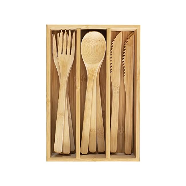 Totally Bamboo 12-Piece Reusable Bamboo Flatware Set with Portable Storage Case, Dishwasher Safe