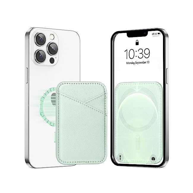 Miroddi for MagSafe Wallet, Leather Magnetic Wallet Card Holder for iPhone 15/14/13/12 Series, 0.12″ Invisible Ultra-Thin Magnetic Phone Wallet, 2 Independent Card Slot, RFID Blocking, Leafy Green